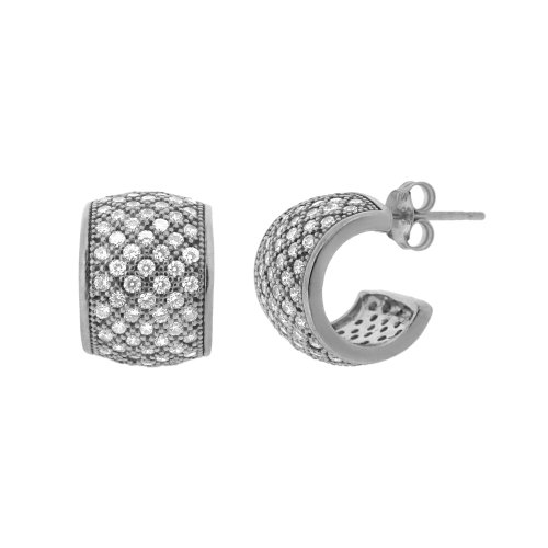 Buy Now! Sterling Silver Micro Pave Cubic Zirconia J-Hoop Post Earrings