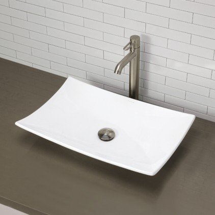 ... [ Read More ... Decolav 1443-CWH Classically Redefined Curved Rectangle Vitreous China Above Counter Lavatory Sink, White ]